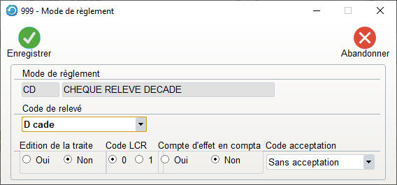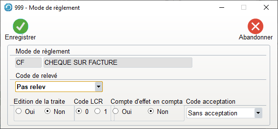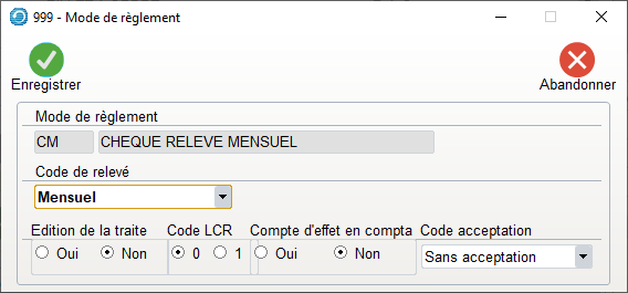 - Ce critère associé à une fiche client ou fournisseur permet de déterminer le « mode de règlement » , chèque, traite ..