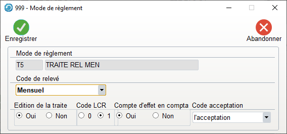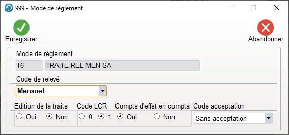 T6 – Traite Relevé Mensuel sans Acceptation