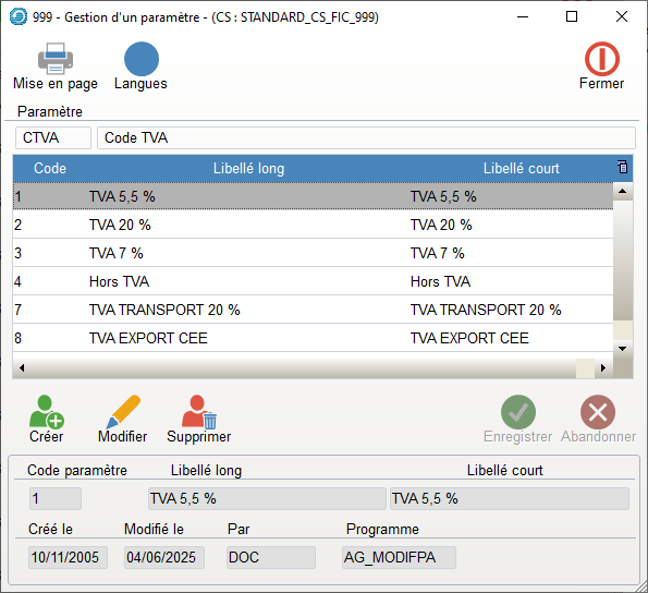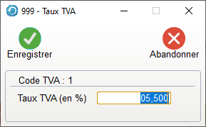 - On ne peut gérer que 9 Codes Paramètres TVA.