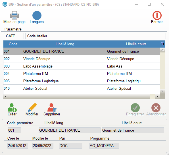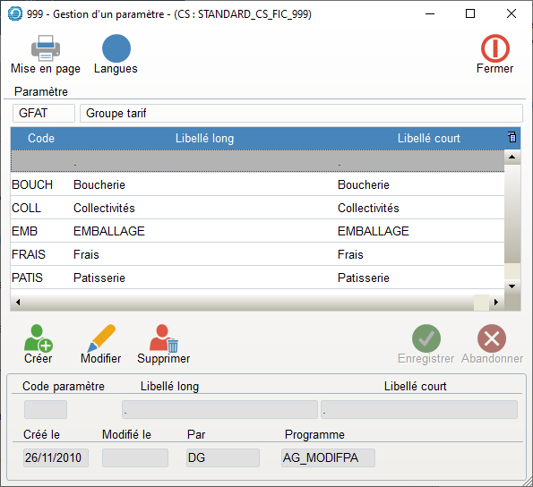- Ces paramètres permettent d’organiser les tris des états, les regroupements de paramétrage, les regroupements statistiques de manière transversale.