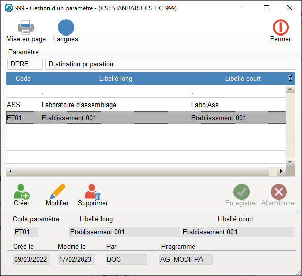 - L’utilisation de « faux codes langues » permet des personnalisations de « libellés » ou « commentaires »par ex : FR1 FR2 pour différents cas « français ».