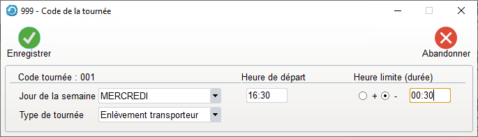 - Ce critère permet d’enregistrer les transporteurs à associer aux tournées.
