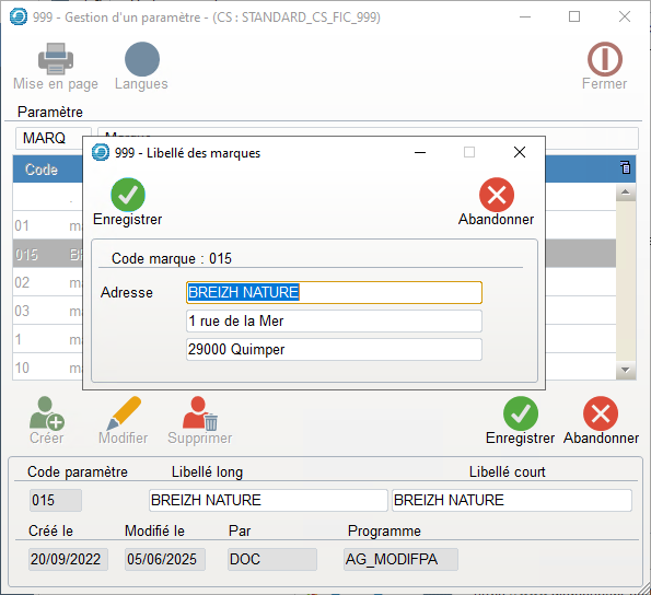 - Saisir les 3 lignes de libellé de la « marque ».