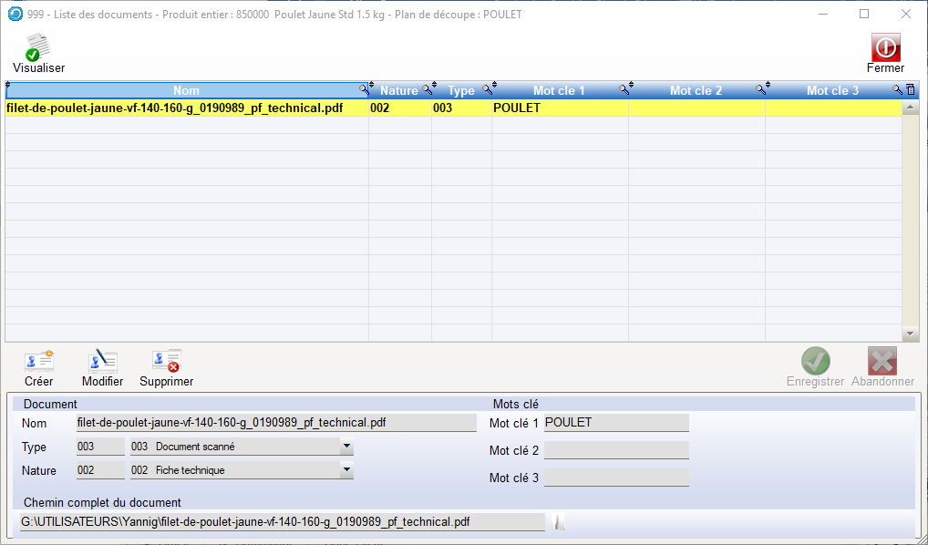 Des Documents peuvent être inclus au « Produit Entier » en cliquant sur le Bouton « Documents ».