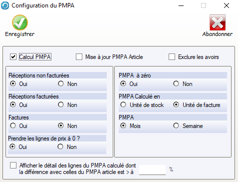 - Si vous cochez Calcul PMPA, le logiciel effectue le calcul.