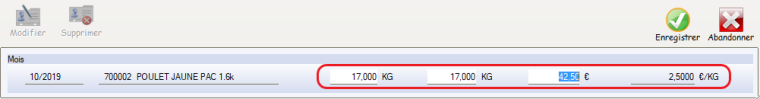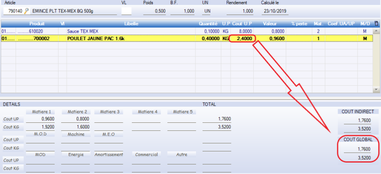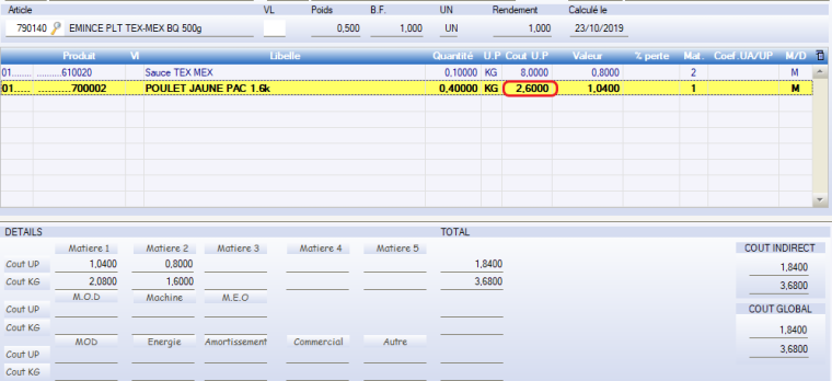 - Le logiciel calcul la marge avec la valeur 2,5 (le PMPA d’octobre 2019).