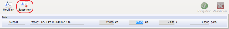 Le Bouton Supprimer permet de supprimer une Ligne d’historique de la Gestion du PMPA.