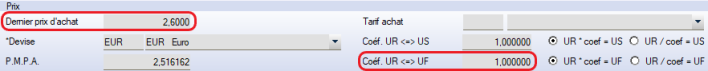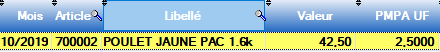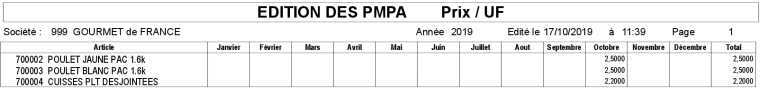 - PMPA exprimé selon l’Unité de Facture (UN ou KG) : 2,5162€
