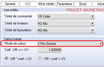 Lorsqu’un article est paramétré en calcul de marge sur Prix d’Achat, le logiciel recherche le PMPA pour calculer la marge et si il n’existe pas, il prend le Dernier Prix d’Achat.