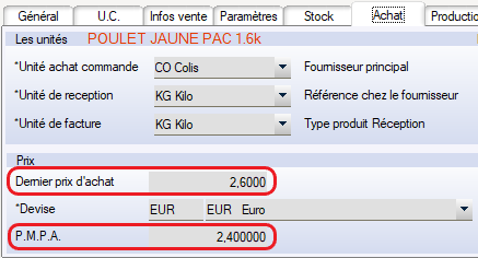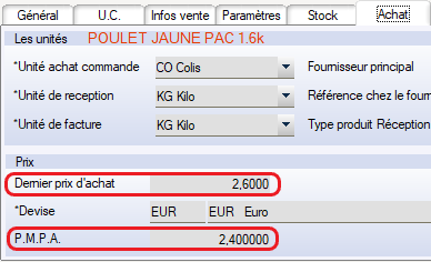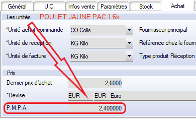 Lorsqu’un article n’a pas de PMPA, le logiciel retient le dernier prix d’achat.