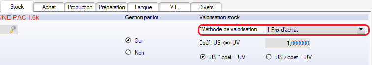 En général pour les produits de type Négoce ou Matières 1ère, le PMPA sert de base pour la valorisation des Stocks.