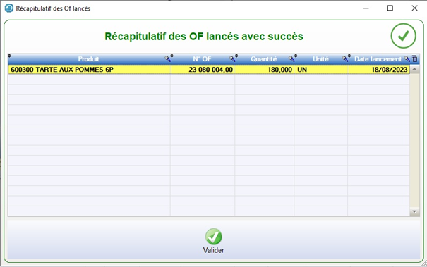 L’utilisateur pourra alors choisir de valider les quantités pré-calculées, de les modifier et enfin de lancer tous les OF à réaliser.