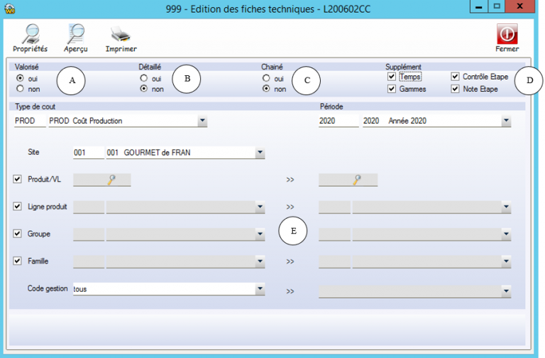 C – Chaîné : Choix d’une Edition chaînée ou Pas – Edition Recette Niveau 1 seulement ou Edition des Recettes de Niveaux inférieures aussi.
