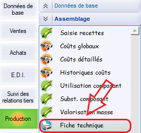 Le chemin d’accès AltaG : Production > Assemblage > Fiche technique