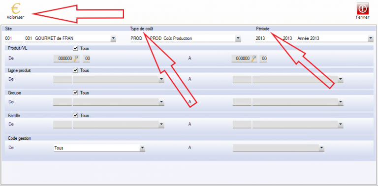 La valorisation est basée sur une notion de « période » et de « type de coût ». Ces 2 notions permettent d’historiser les valeurs pour des analyses comparatives.