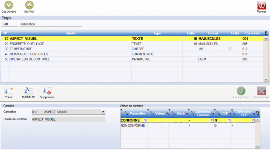 Contrôle : Les contrôles qualité à effectuer par étape lors de la saisie des OFs atelier.