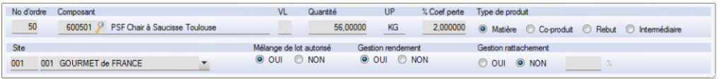 Pour chaque article « Composant » : L’ordre de « saisie » (numérotation) donne l ordre d’affichage en gestion OF atelier , et en général l’ordre des ingrédients dans la recette.