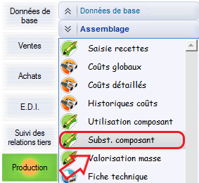 Le chemin d’accès AltaG : Production > Assemblage > Subst. Composant