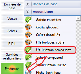 Le chemin d’accès AltaG : Production > Assemblage > Utilisation Composant