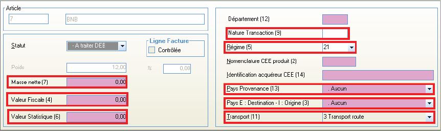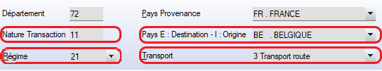 • Pour les champs encadrés en rouge, la codification des douanes est à adapter selon votre entreprise. Référez-vous à vos documents concernant le service des douanes pour leur contenu.