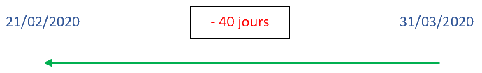Les factures sélectionnées seront donc celles comprises entre le 31/03/2020 (mois sélectionné) moins les 40 jours (le nombre de jours saisi), donc le 21/02/2020.