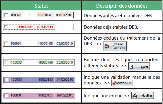 • Cette fenêtre permet d’agir sur les données avant de lancer le traitement de la DEB.