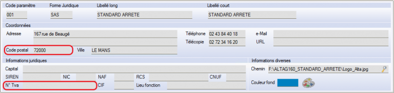 • Il est obligatoire de renseigner le champ Code postal si le paramétrage est créé.