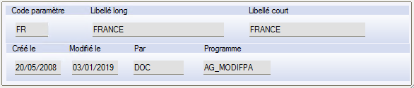 Chemin d’accès : Données de base > Paramètres > Code paramètre PAYS