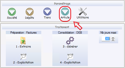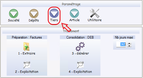 • La fenêtre Préparation Calcul permet d’extraire les données facturées en tenant compte des paramétrages tiers et articles de manière à créer un fichier de pré-calcul contenant les futures données à traiter dans la DEB.
