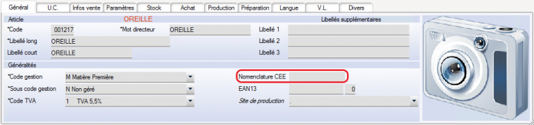 • Voir la Nomenclature CEE (Paramétrage Article).