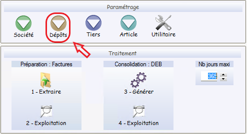 • Paramétrage Dépôt : Paramétrage à effectuer pour des échanges inter-dépôts propres à l’entreprise.