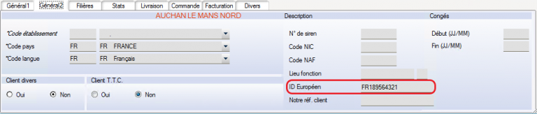 Chemin d’accès : Données de base > Clients > Onglet Général 2