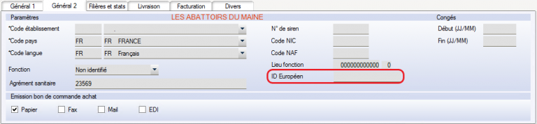 Chemin d’accès : Données de base > Fournisseurs > Onglet Général 2