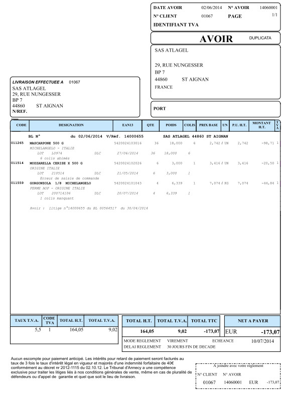 Avoir Génération de l’avoir une fois le litige traité et soldé.
