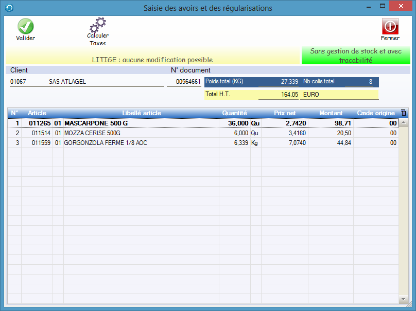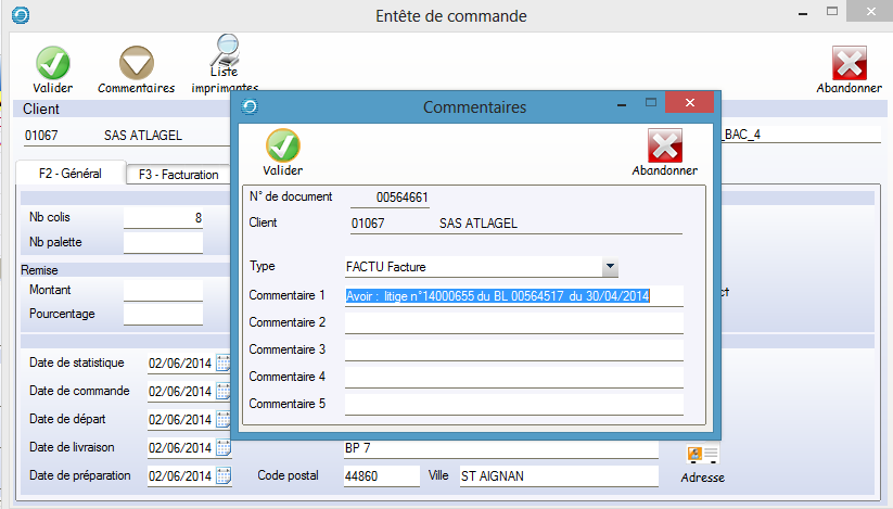 Article géré en stock La gestion des stocks est possible si l’article est géré en stock. On prend soit le dépôt de la ligne de commande soit le dépôt sélectionné. Mise à jour en date du solde du litige.
