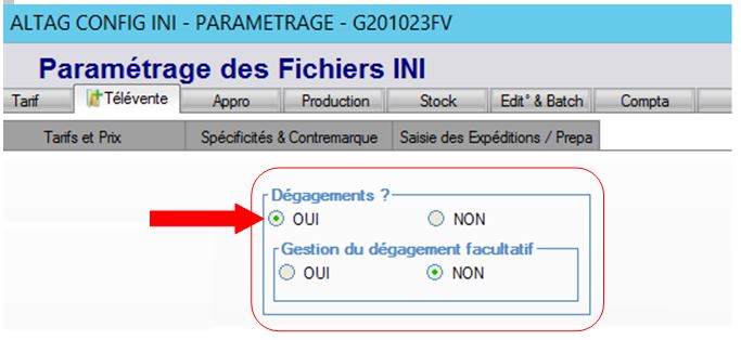 Si un article est signalé en dégagement, lors de la saisie de commande, le télévendeur peut être averti automatiquement ou non et a le choix ou non d’affecter la ligne de commande au dégagement.