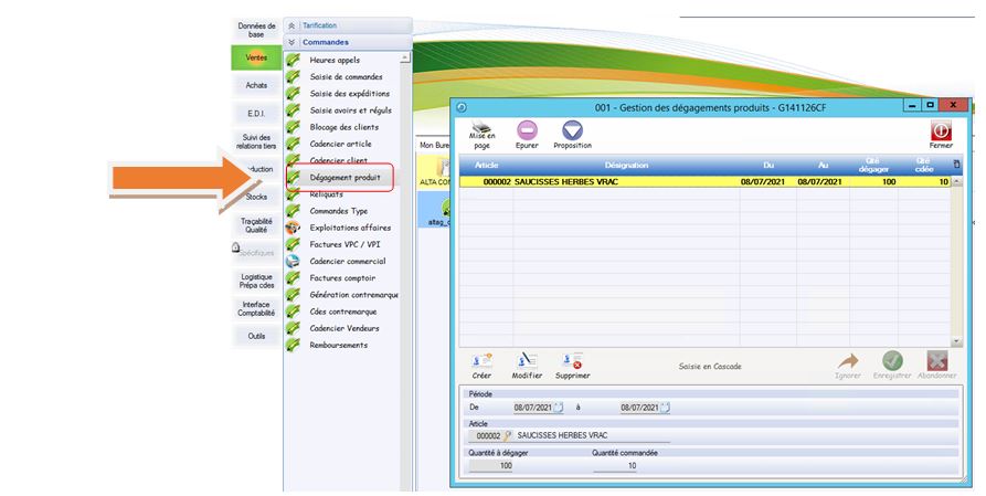 Les produits à DLC courte sont répertoriés par l’option de menu ALTA’G « GESTION DES DÉGAGEMENTS.