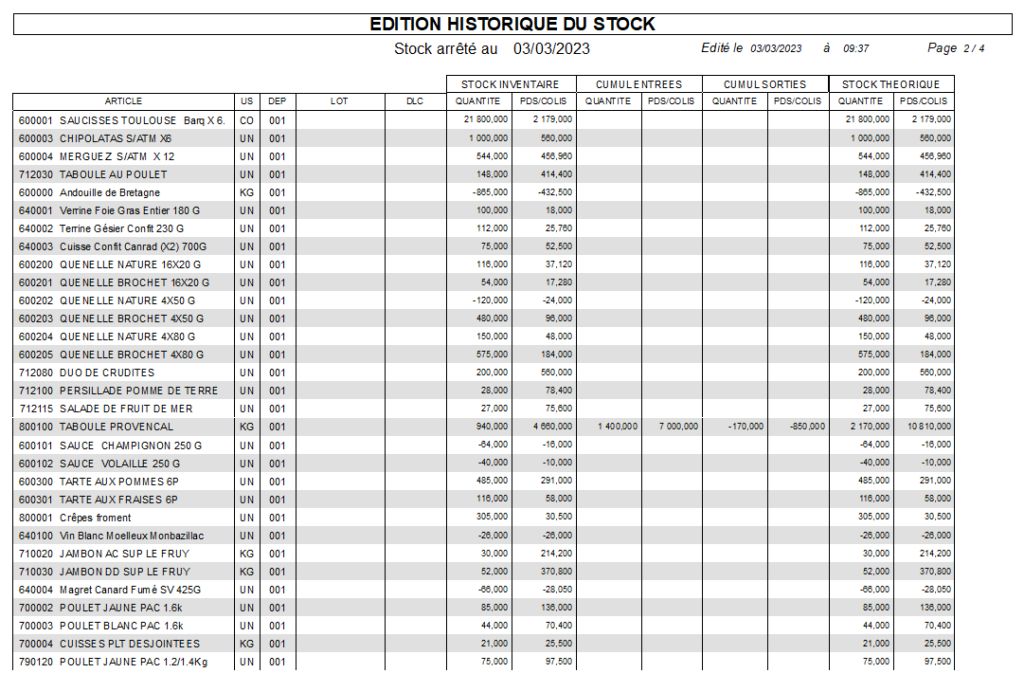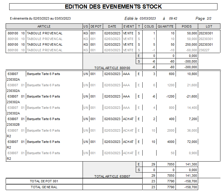 - Chaque mouvement généré par le logiciel est enregistré par un « Évènement de Stock » daté et chronologique. L’identification des flux se fait par « un Code Évènement » (voir description ci dessous).