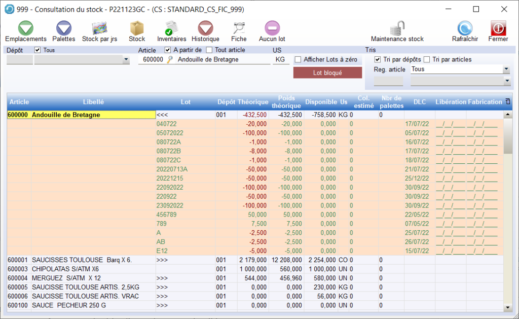 - Attention : Le Stock ne gère qu’une seule DLC par Lot pour un Article.