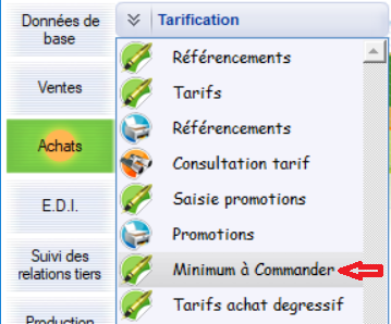 Achats >> Tarification >> Minimum à Commander