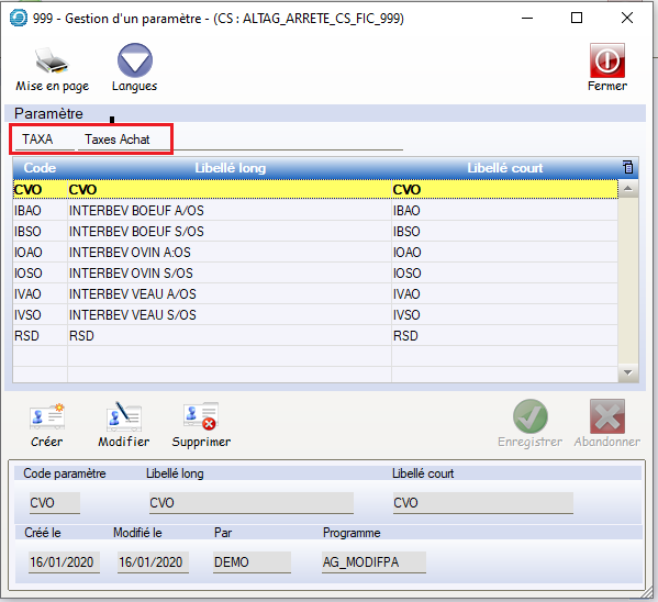 L’utilisation du Bouton Copier représente un gain de temps certain pour dupliquer des Taxes se ressemblant en terme de paramétrage et d’affection Article/Fournisseur/Pays…