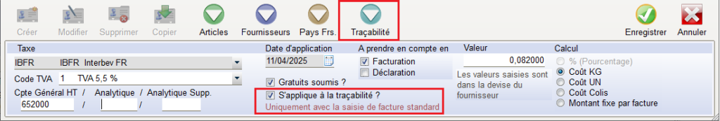 S’applique sur la traçabilité Oui(Coche) ou Non(Décoche) – voir ci-dessous