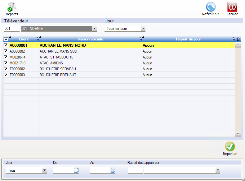 ATTENTION : Les clients de la liste reportée s’affichent à la fin de la liste du jour.