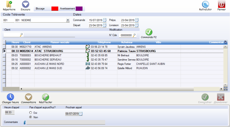 Le module télévente permet de saisir-modifier-supprimer les commandes clients.