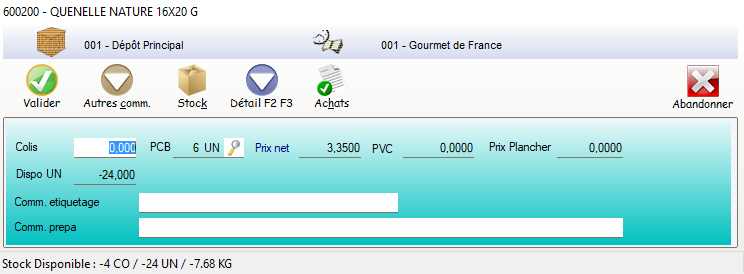 Le nombre de palettes commandées est indicatif, non calculé , non pris en compte dans le reste du logiciel