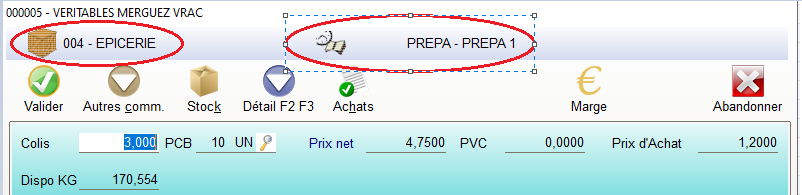 Astuce : ce bandeau rappelle le mode de préparation et le dépôt , un clic sur l’icône (visuel) pour modifier le dépôt ou le mode de préparation