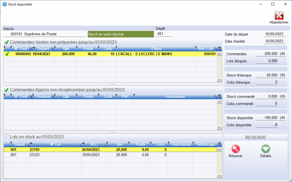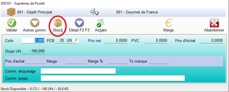 Outil config > Onglet saisie des commandes.Comment est calculé le stock disponible ?