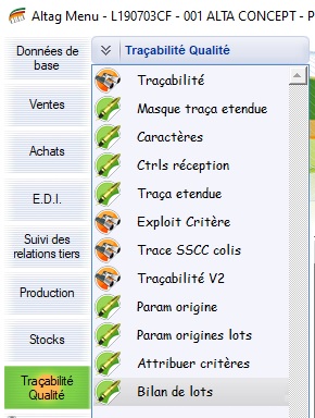 Chemin d’accès : Traçabilité - qualité > Bilan de lots