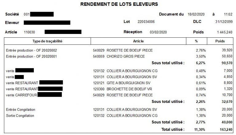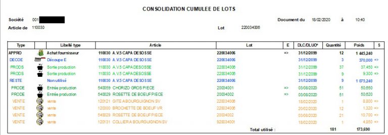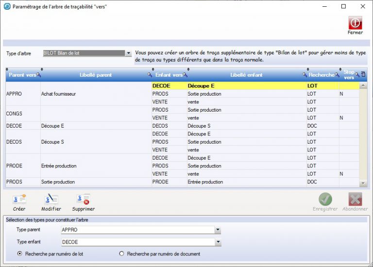 - Le bilan de lots se base sur l’arbre de traçabilité de type vers qui est paramétré dans l’application de Traçabilité V2.