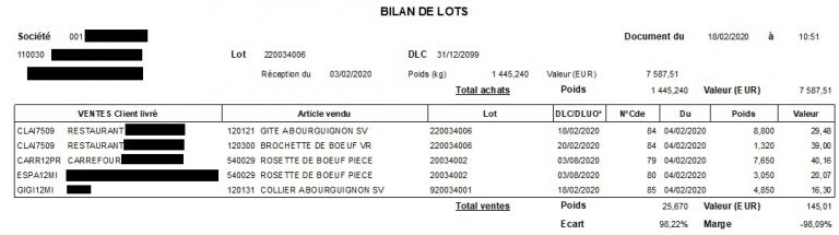 - Bilan des ventes d’un ou plusieurs lot